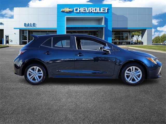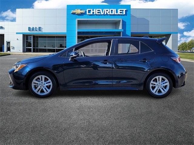 Bale Chevrolet is delighted to offer this great 2021 Toyota Corolla Hatchback SE in Blue Beautifully equipped with Alloy wheels, Split folding rear seat, 4-Wheel Disc Brakes, 6 Speakers, ABS brakes, Air Conditioning, AM/FM radio: SiriusXM, Apple CarPlay/Android Auto, Auto High-beam Headlights, Automatic temperature control, Blind Spot Monitor (BSM), Brake assist, Bumpers: body-color, Compass, Cruise Control, Delay-off headlights, Driver door bin, Driver vanity mirror, Dual front impact airbags, Dual front side impact airbags, Electronic Stability Control, Emergency communication system: Safety Connect with 1-year trial, Exterior Parking Camera Rear, Fabric Upholstery, Four wheel independent suspension, Front anti-roll bar, Front Bucket Seats, Front Center Armrest, Front reading lights, Heated door mirrors, Illuminated entry, Knee airbag, Leather Shift Knob, Low tire pressure warning, Occupant sensing airbag, Outside temperature display, Overhead airbag, Overhead console, Panic alarm, Passenger door bin, Passenger vanity mirror, Power door mirrors, Power steering, Power windows, Radio data system, Radio: Audio, Radio: Audio Plus, Rear anti-roll bar, Rear seat center armrest, Rear side impact airbag, Rear window defroster, Rear window wiper, Remote keyless entry, Security system, Speed-sensing steering, Spoiler, Sport Front Seats, Steering wheel mounted audio controls, Tachometer, Telescoping steering wheel, Tilt steering wheel, Traction control, Trip computer, Turn signal indicator mirrors, and Variably intermittent wipers!